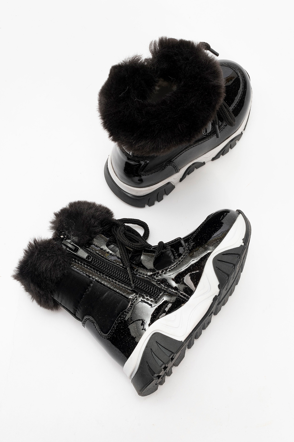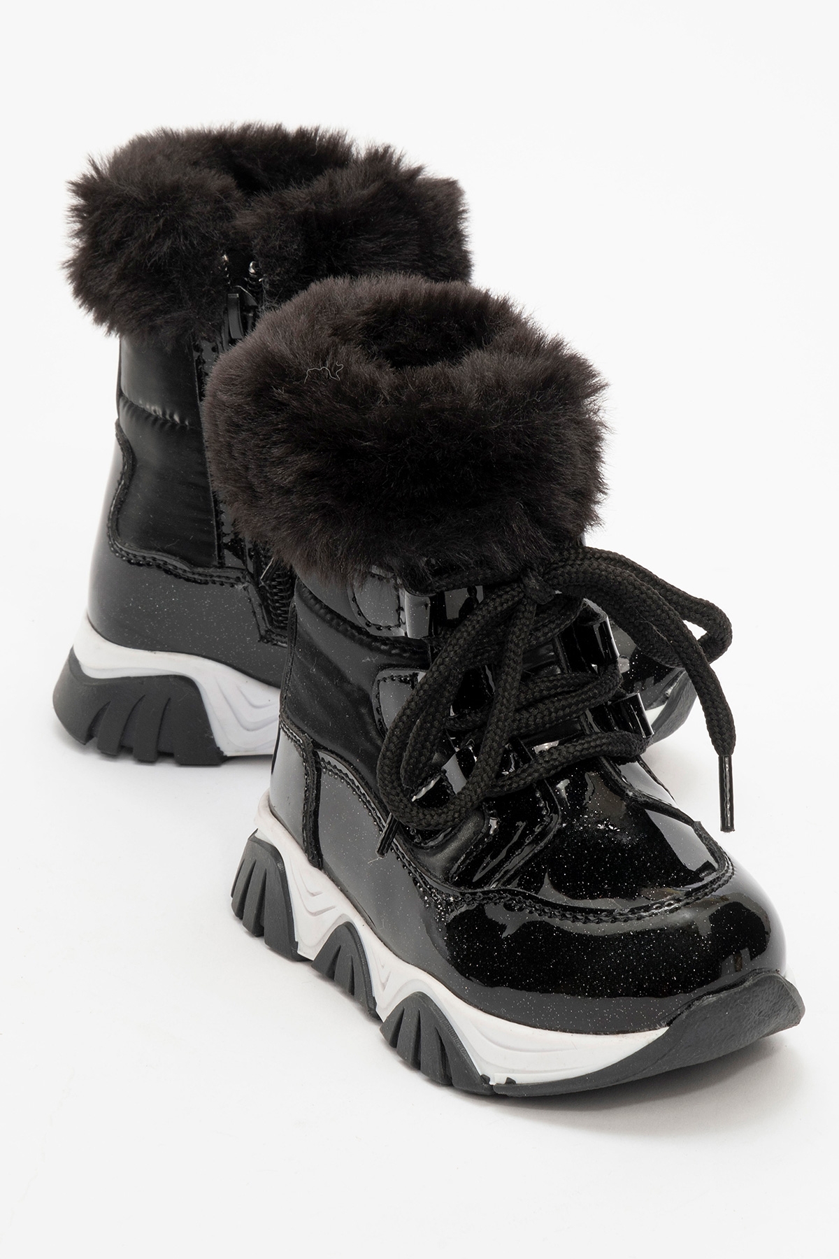mnpc Kız Çocuk Rugan Deri Suya Dayanıklı Kürklü Günlük Bot